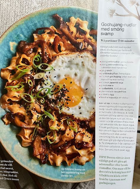 Stek svamp i olja tills den fått fin färg. Lägg i friterad ingefära för att få en fin touch.